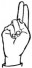 На ћирилици написано РАДОВАН ЦАПУРЕЛОВИЋ састоји се из 18 слова [?]. Исписано ћириличном једноручном азбуком за глувонеме: